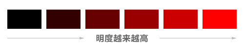 2、明度(亮度):指色彩的明亮程度,在任何颜色中添加白色,明度上升,添加黑色,明度下降。因此,色彩中明度最高的是白色,明度最低的黑色。